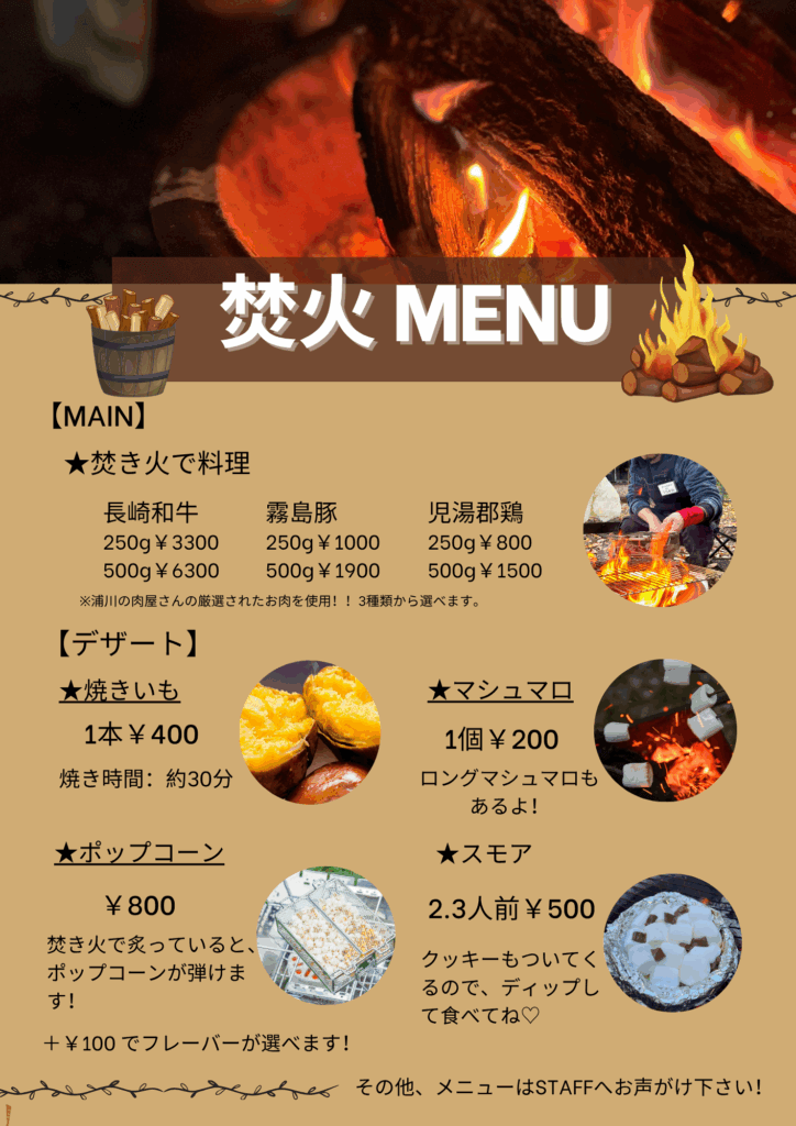 「ぶらりBBQプラン」「焚火でひと息プラン」をご利用の方もご注文いただけます。