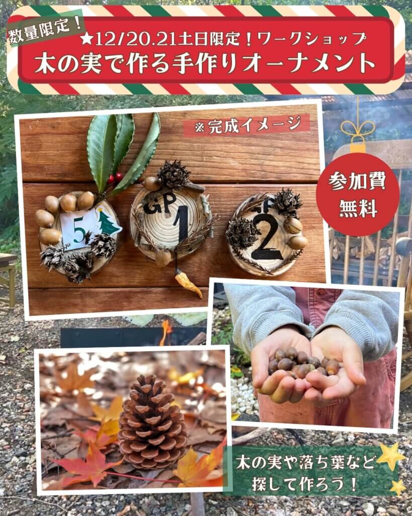 森の中で焚き火やワークショップを楽しみ、心温まるクリスマスのひとときを。